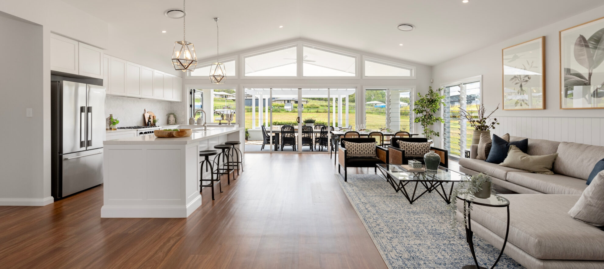 If you don’t have time to visit a new display home in person, virtual display home tours are available for many of our home designs, including the Retreat 303 acreage home design which you can virtually tour at our Woodhill display home in Mahoney’s Pocket acreage display village.