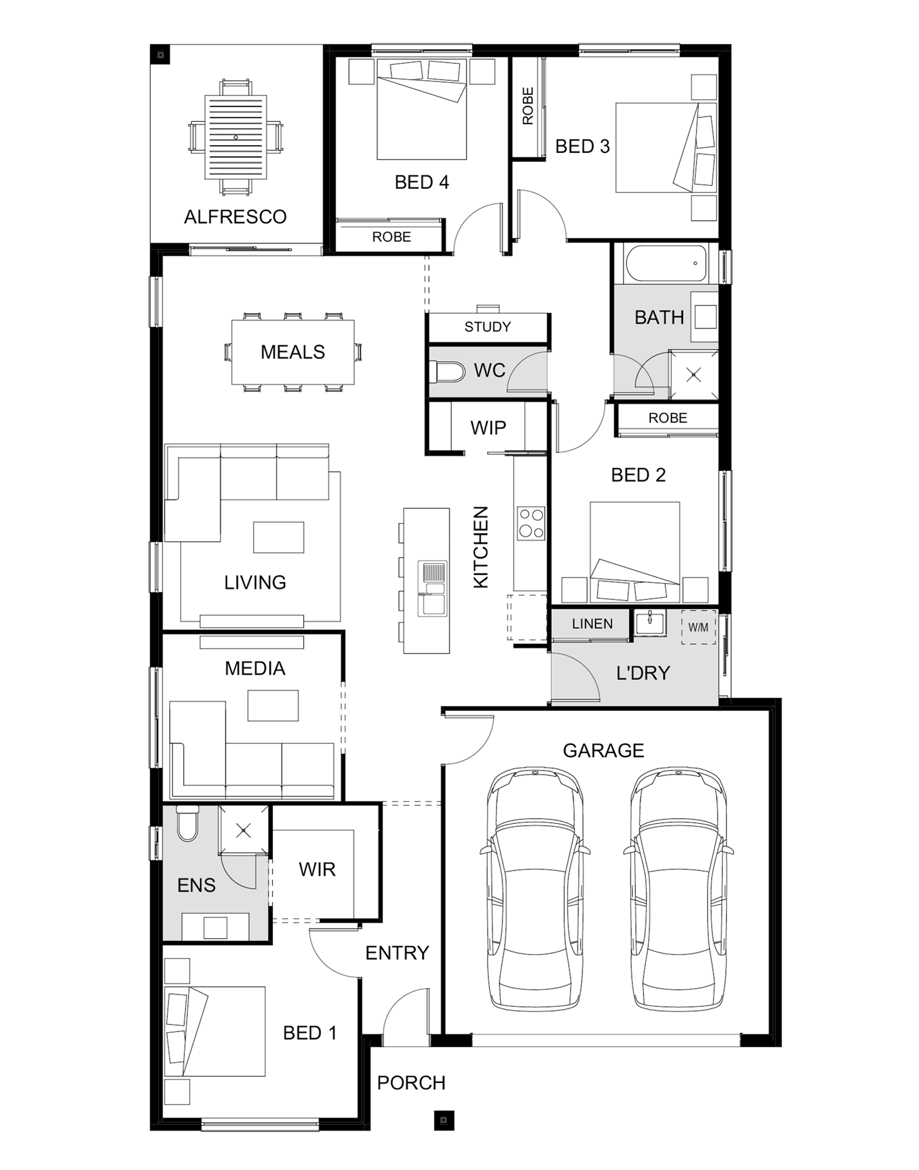 The open-plan living areas and alfresco create a central hub that adds to the spacious feel of the Manly 200, a beautiful single-storey home from our Luma house designs range. With four bedrooms, two bathrooms and fantastic flow throughout the home, it’s an ideal home design for active and growing families. Available in traditional and modern façades, including an extensive selection of contemporary-style light and dark façades.